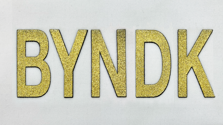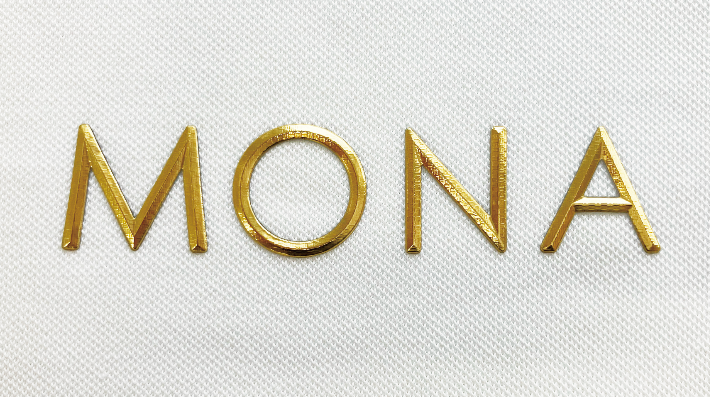 プリスト転写は、独自の高周波成形技術を用いて金属のような質感を表現した商品で、本物の金属とは異なる柔らかさを持つ加工です。ウェアへの加工は熱転写によって接着します。本体は特殊フィルムに印刷を施したポリウレタン素材で、メタリックな色味や立体感、そして軽さを兼ね備えた高級感のある仕上がりを実現しています。