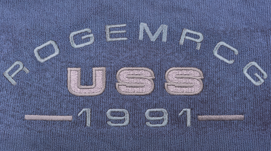 相楽刺繍は、糸をループ状に浮かせることで、ザックリとした立体感と柔らかな質感を出す刺繍技法です。当社では、文字や柄のデザインに応じてパンチデータ(刺繍データ)の密度や針方向を最適化し、生地の伸縮性や厚みに合わせた仕上がりを実現しています。また、平刺繍との組み合わせにより、デザインの表現力が広がります。