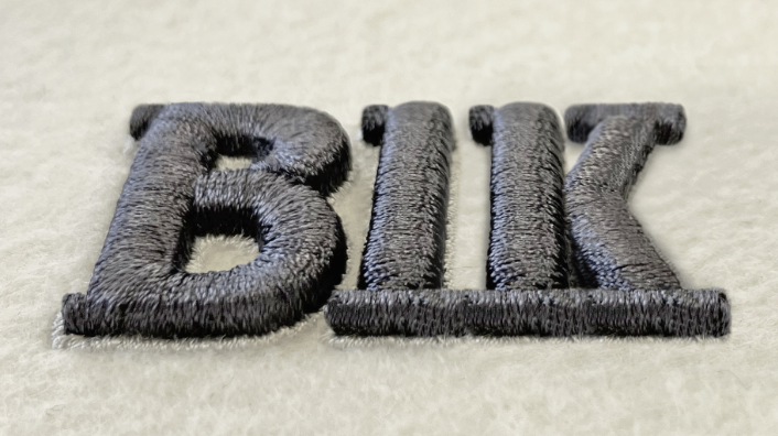 3D刺繍は、従来の平刺繍にウレタンシートを組み合わせることで、立体的な表現を可能にした刺繍技法です。ベース生地の上にウレタンシートを重ね、その上から刺繍を施し、刺繍後に不要なウレタン部分を取り除きます。刺繍部分が高く盛り上がり、立体感のある仕上がりになります。また、平刺繍との組み合わせも可能です。