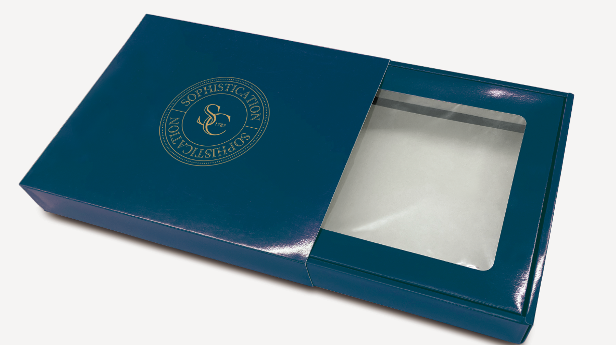 スリーブボックスは、外側のスリーブに内箱を滑らせて収めるスライド構造が特徴で、機能性とデザイン性を備えたボックスです。アパレル商品を美しく、かつ保護しながら収納できるため、ギフト需要の高い売場や催事向けとして幅広く採用されており、シンプルで使いやすい構造です。
