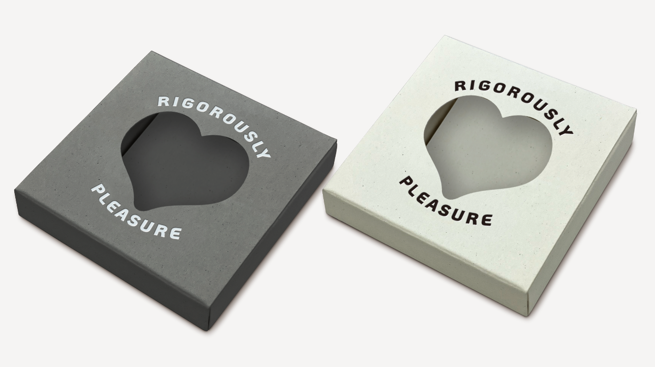 ハート型ウィンドウパッケージは、単なる窓抜きデザインではなく、商品の魅力を伝える“体感型パッケージ”として設計されています。パッケージの一部をハート型にダイカットすることで、収納した商品の素材の質感・風合い・手触りなどを開封前に指先で直接確認できる構造になっており、購買意欲を高めます。