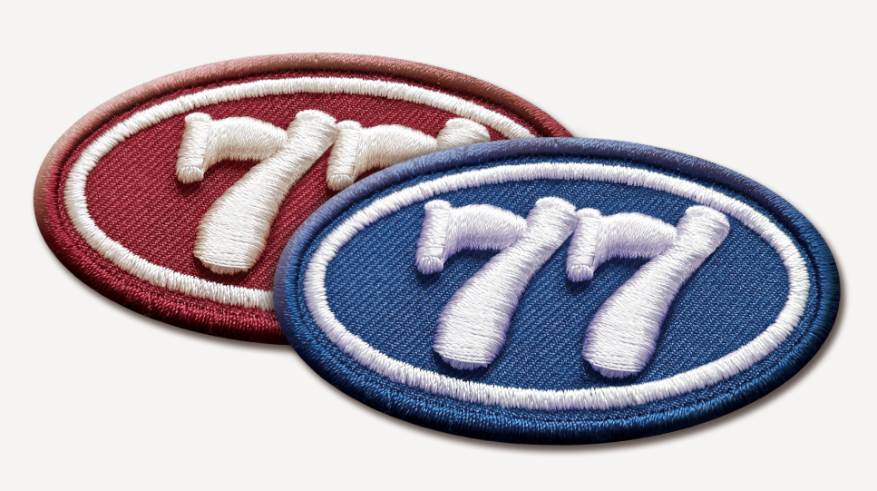 平刺繍とウレタンシートを組み合わせることで立体的な表現を可能にしたワッペンで、周囲は刺繍ロック仕上げになっています。まず、ベース生地の上にウレタンシートを重ね、その上から刺繍を施します。刺繍後に不要なウレタン部分を取り除くことで、刺繍部分が高く盛り上がり、立体感のある仕上がりになります。